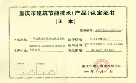 此證書為往年曾獲證書,本介紹頁僅為方便用戶了解企業(yè)歷史資質,望悉知 重慶市建筑節(jié)能基礎(產品)認定證書