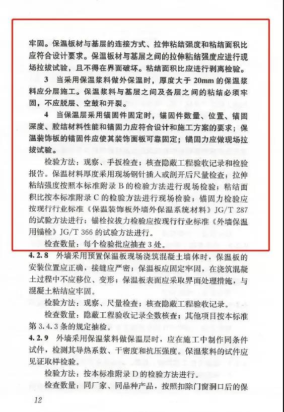 4.2.3:外墻外保溫工程應采用預制構件、定型產品或成套技術,并應由同一供應商提供配套的組成材料和型式檢驗報告。型式檢驗報告中應包括耐候性和抗風壓性能檢驗項目以及配套組成材料的名稱、生產單位、規格型號及主要性能參數。