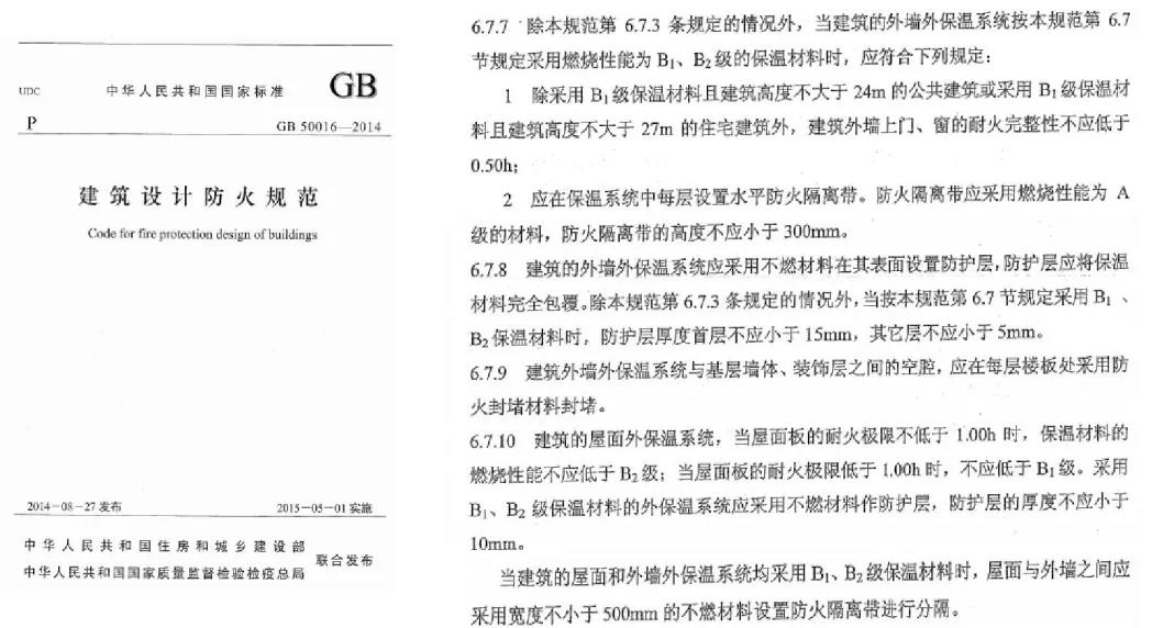 綜上所述,建筑保溫雖然在中國建筑行業(yè)的發(fā)展歷程中坎坷重重,但慶幸于國家有關部門的快速調控,相關企業(yè)的“良心”發(fā)展,如2009 年9 月,公安部、住房城鄉(xiāng)建設部發(fā)布了 46 號文《民用建筑外保溫系統(tǒng)及外墻裝 飾防火暫行規(guī)定》(公通字[2009]46 號)即規(guī)定民用建筑外墻保溫材料的燃燒性能宜為A級,且不應低于B2。2011 年 3 月,公安部消防局發(fā)布了 65 號文《公安部關于進一步明確民用建筑外保溫材 料消防監(jiān)督管理有關要求的通知》(公消[2011]65 號)規(guī)定民用建筑材料要采用燃燒性能為A級的材料。2012 年 12 月份,公安部消防局又發(fā)布了 350 號文《關于民用建筑外保溫材料消防監(jiān)督 管理有關事項的通知》(公消〔2012〕350 號),終止了 65 號文,規(guī)定保溫材料可以用B1材料。
