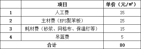 2021年某項目EPS外墻施工報價表