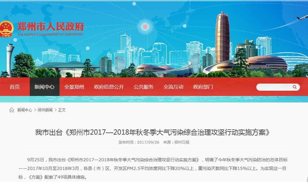 為了配合環(huán)境保護(hù)部、國家發(fā)展和改革委員會(huì)、工業(yè)和信息化部、公安部、財(cái)政部、住房城鄉(xiāng)建設(shè)部、交通運(yùn)輸部、工商總局、質(zhì)檢總局、國家能源局十部委聯(lián)合北京市、 天津市、河北省、山西省、山東省、河南省共同發(fā)布《京津冀及周邊地區(qū)2017-2018年秋冬季大氣污染綜合治理攻堅(jiān)行動(dòng)方案》,9月25日,鄭州市出臺(tái)《鄭州市2017—2018年秋冬季大氣污染綜合治理攻堅(jiān)行動(dòng)實(shí)施方案》,明確了2017年秋冬季大氣污染防治的總體目標(biāo)——2017年10月至2018年3月,各縣(市)區(qū)、開發(fā)區(qū)PM2.5平均濃度同比下降20%以上,重污染天數(shù)同比下降15%以上。為實(shí)現(xiàn)這一目標(biāo),《方案》配套了49項(xiàng)具體措施,其中,涉及建材行業(yè)的有: