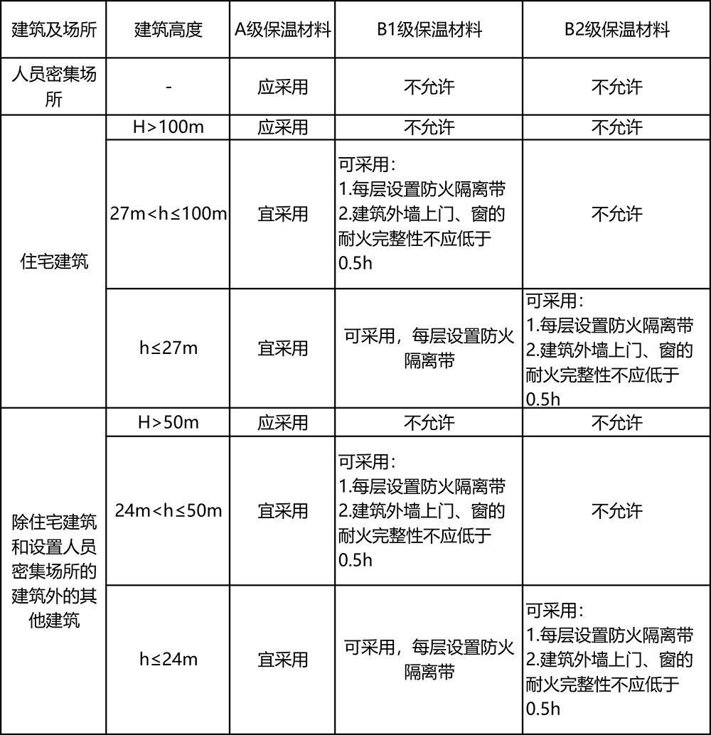 《建筑防火通用規(guī)范》與《建筑設(shè)計防火規(guī)范》都規(guī)定了外墻保溫材料宜采用A級不燃燒材料。目前的建筑外墻保溫材料防火等級主要有四級,宜采用A級不燃材料、不宜采用B2級可燃材料、嚴(yán)禁采用B3級易燃材料。