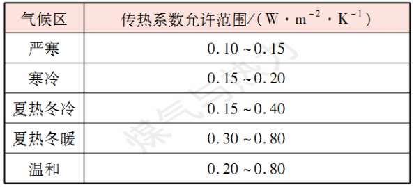 不同氣候區居住建筑外墻傳熱系數允許范圍