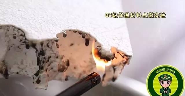 點(diǎn)燃A級保溫材料,保溫材料沒有出現(xiàn)一點(diǎn)要被點(diǎn)燃的跡象,持續(xù)三分鐘后,保溫材料依然沒有被點(diǎn)燃,但有顆粒狀物體掉落。